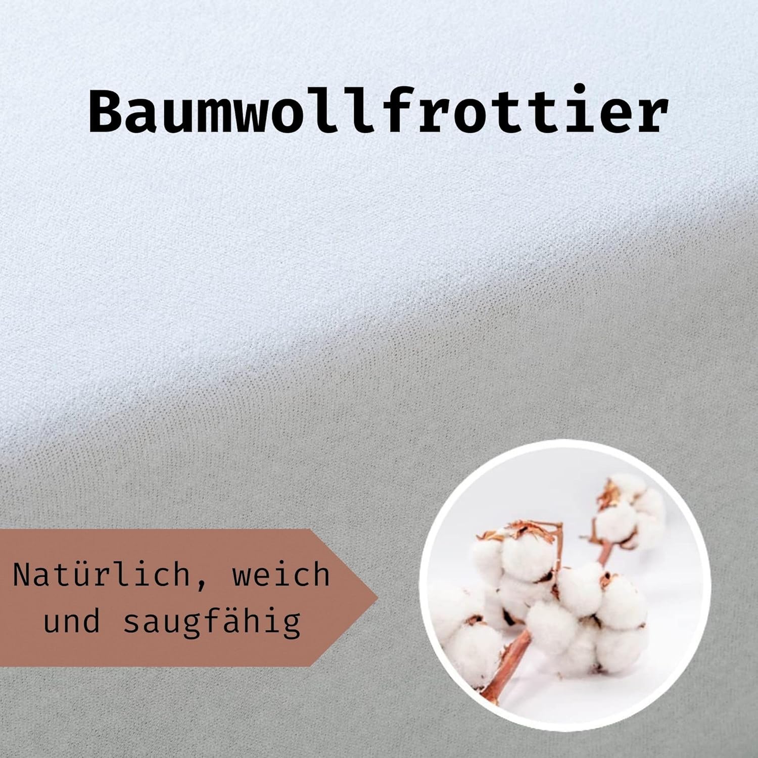 Die herausragende Qualität des Tural Matratzenschoners beginnt mit der sorgfältigen Auswahl der Rohstoffe. Das verwendete Baumwoll-Towelling besteht aus 100 % Baumwolle und zeichnet sich durch seine natürliche, hochabsorbierende Struktur aus. Baumwolle ist eine pflanzliche Naturfaser, die nicht nur besonders hautfreundlich, sondern auch äußerst saugstark ist. Jede Faser kann das Bis- zum Dreifache ihres Eigengewichts an Feuchtigkeit aufnehmen, ohne dass ein nasses Gefühl entsteht.