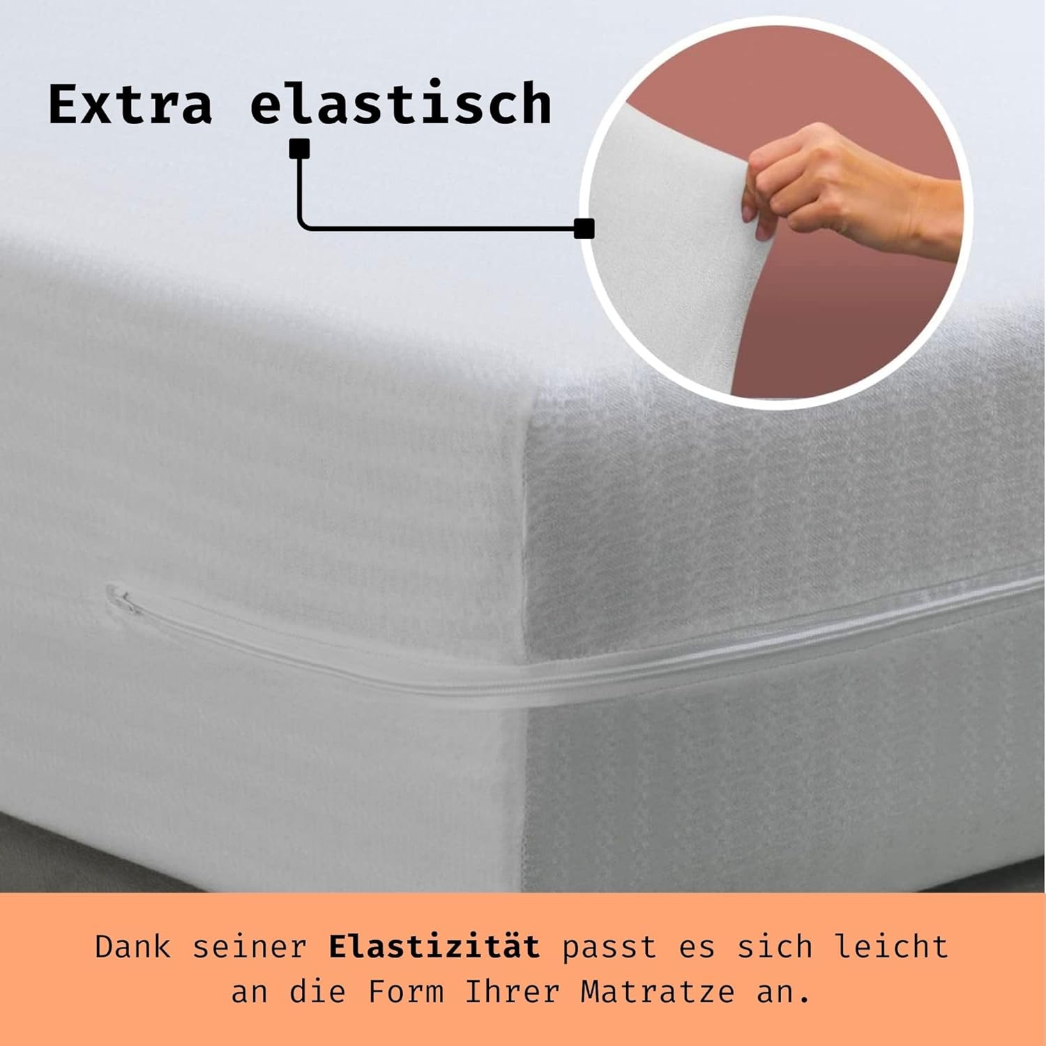 Der Schoner wird in einer umweltfreundlichen Verpackung geliefert, die sich leicht öffnen und recyceln lässt. Er ist sofort einsatzbereit – einfach über die Matratze ziehen, den Reißverschluss schließen und das Bettlaken darüber spannen.