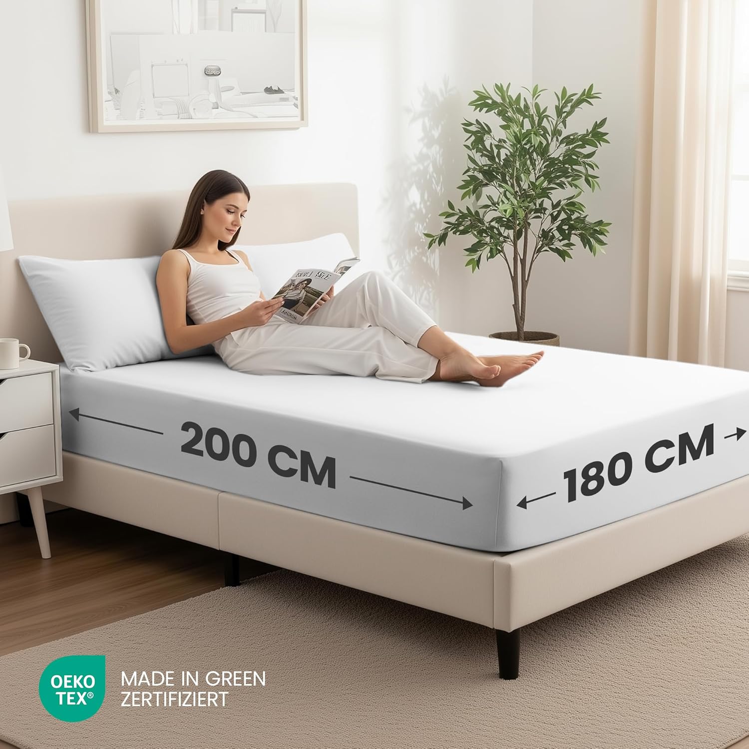 Perfekt geeignet für Matratzen mit einer Höhe von bis zu 35 cm, umschließt dieses Spannleintuch jede Matratze wie eine zweite Haut. Die hochelastischen Einfassungen an allen vier Seiten sorgen dafür, dass das Laken nicht verrutscht, sich faltenfrei an die Matratze schmiegt und ein makelloses Bettbild schafft. Ob klassische Federkern-, Kaltschaum- oder hochwertige Visco-Matratzen – dieses Spannleintuch passt sich souverän jedem modernen Matratzentyp an. Die dezente weiße Farbgebung verleiht jedem Schlafzimmer eine ruhige, harmonische Atmosphäre und lässt sich mühelos mit jeder Bettwäsche, jedem Stil und jeder Jahreszeit kombinieren.
