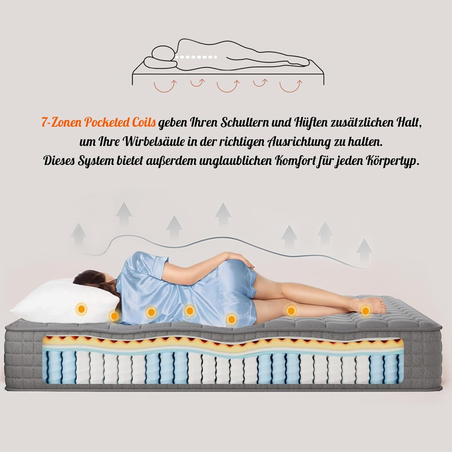 - Geeignet für alle Schlafpositionen – Rücken-, Seiten- und Bauchschläfer