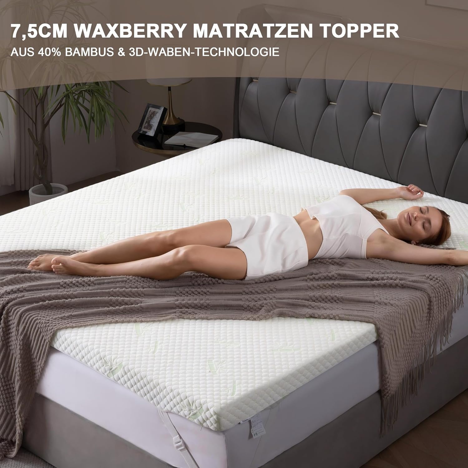 Waxberry Matratzenauflage 160 x 200 cm – 7,5 cm Gel-Memory-Foam mit 3D-Honigwaben-Bambusbezug – Die neue Dimension von Schlafkomfort und Klimaregulation