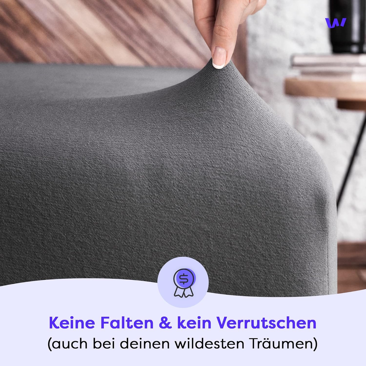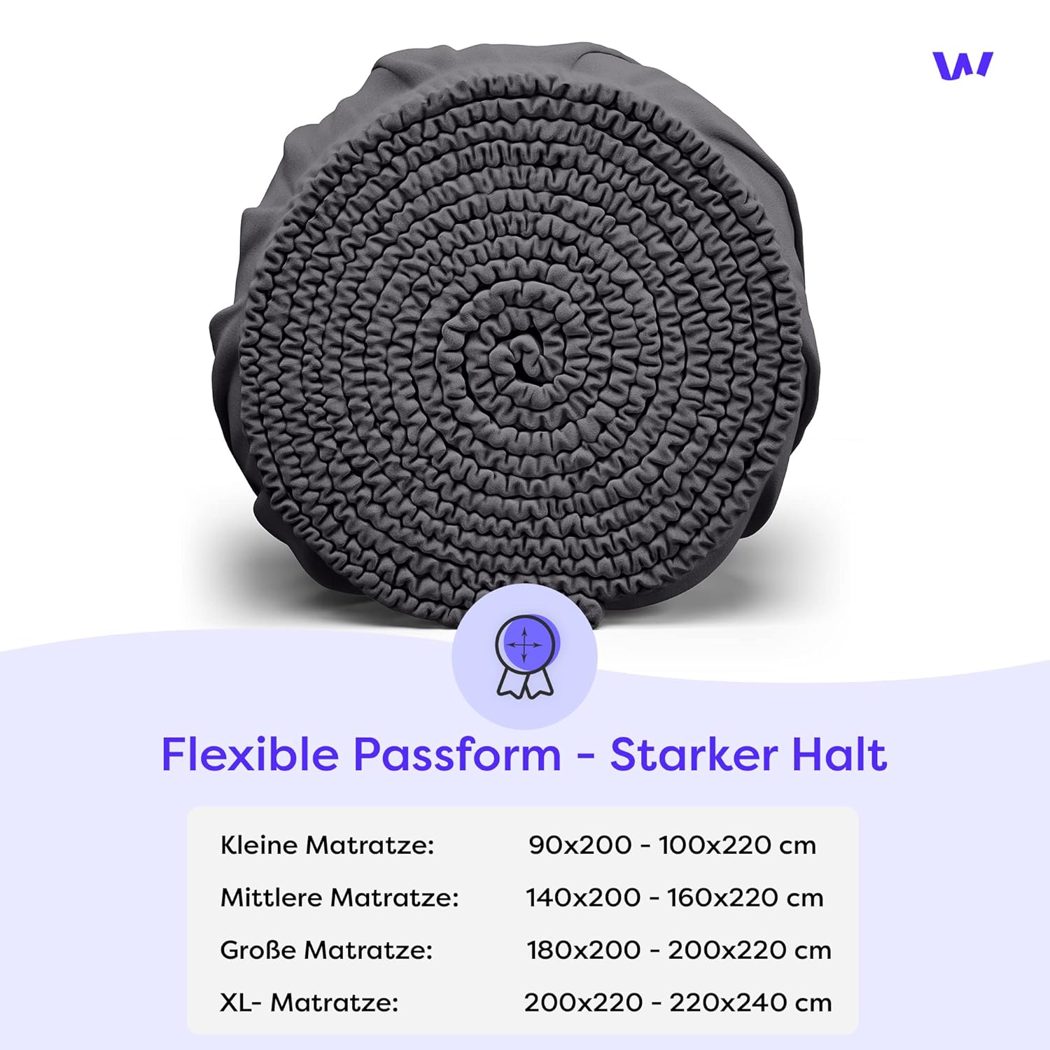 • Hochelastisches Spannlaken mit 360-Grad-Elastikband für sicheren Halt ohne Verrutschen